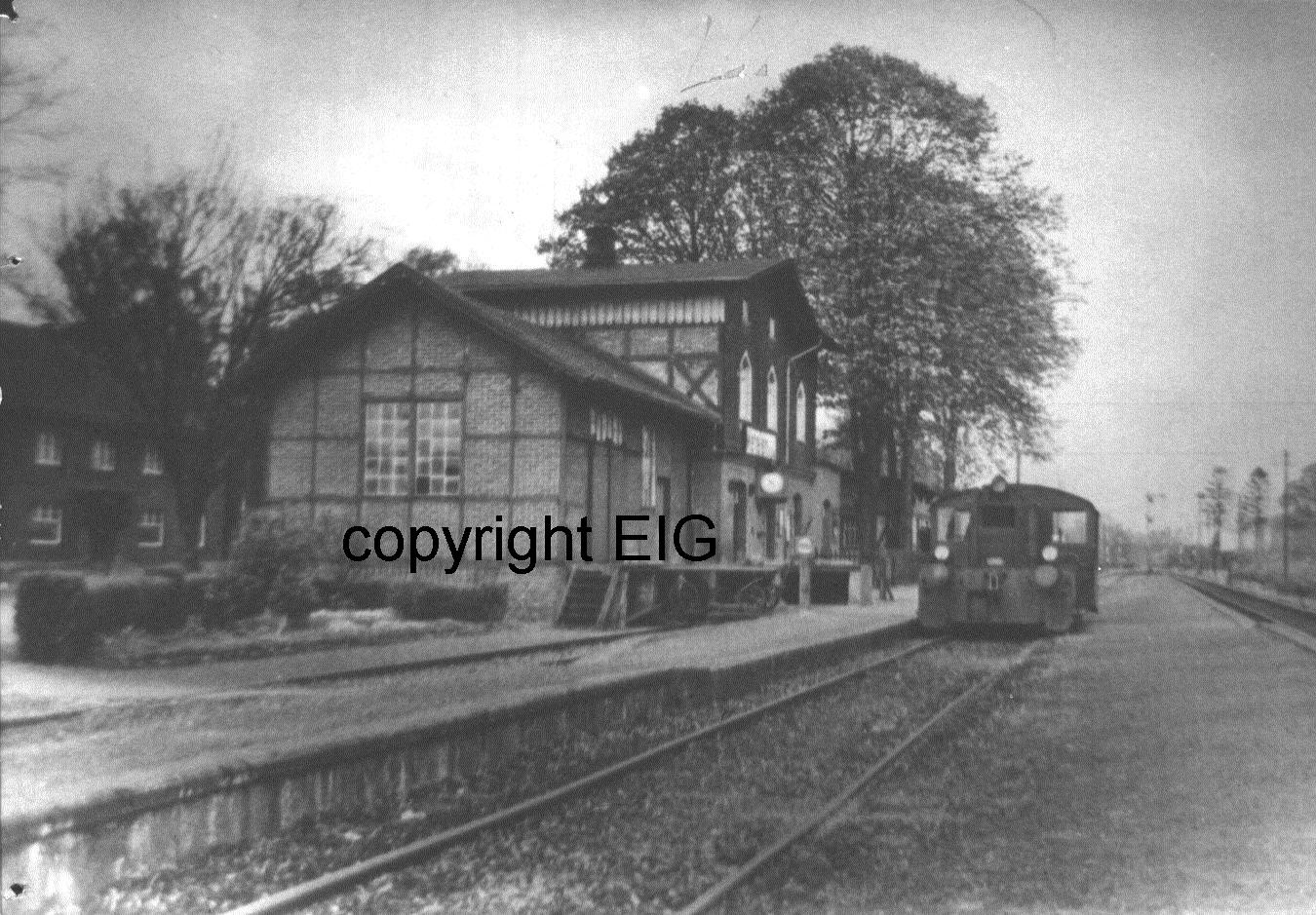 Bahnhof Metelen Land mit Güterschuppen und Köf im Jahre 1958 (Foto: Archiv EIG, copyright EIG)